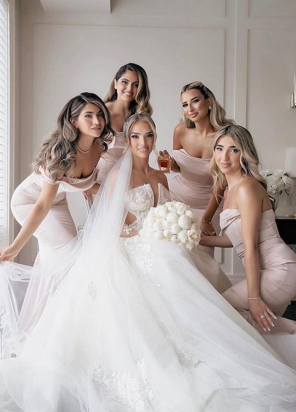 Delilah is elegance personified. It features boning which accentuates the waist and helps to create an hourglass shape. It is made from a smooth lightweight fabric with a lustrous sheen, and features a draped neckline to flatter all figures. The wide straps can be worn both on and off the shoulders. Mermaid bottom and train adds the right amount of drama. Fully lined, back zipper.